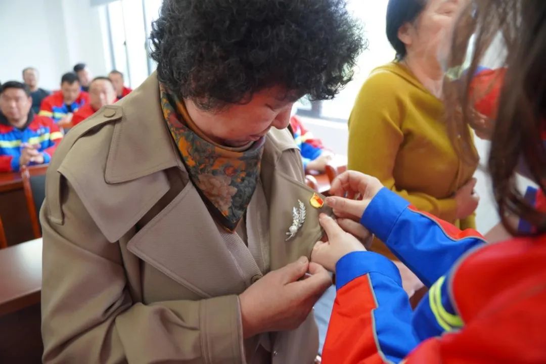 活動(dòng)現(xiàn)場,職工代表認(rèn)真嚴(yán)肅地為黨員媽媽們將紅燦燦的黨徽佩戴在左胸前,借以引導(dǎo)黨員們時(shí)刻銘記黨的宗旨和使命,發(fā)揮好黨員的先鋒模范作用。