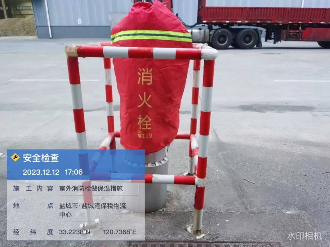保稅物流中心堅持“抓早、抓緊、抓實、抓細”的原則對公司區(qū)域內(nèi)消防管網(wǎng)開展冬季防凍維保工作。主要是對庫區(qū)室外消火栓、消防管網(wǎng)加裝防凍保溫措施,防止消防管道因極寒天氣發(fā)生冰凍、破裂,并進一步強化消防系統(tǒng)巡查,切實做到每臺設備有人管,每條管線有人查,確保各消防設備安全平穩(wěn)過冬。