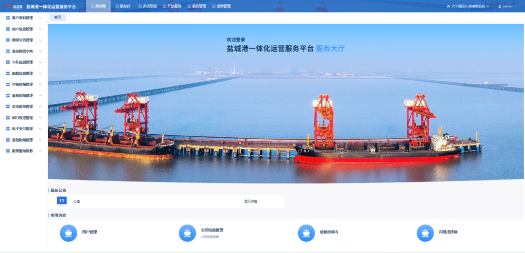 網(wǎng)上營業(yè)廳是綜合性客戶服務(wù)中心平臺,將口岸服務(wù)功能高度集成,提供在線咨詢、預(yù)約、支付等服務(wù),以及數(shù)據(jù)查詢、統(tǒng)計分析等功能,實現(xiàn)各碼頭TOS系統(tǒng)、鹽城電子口岸平臺、海關(guān)海事、客戶自有服務(wù)等系統(tǒng)對接互聯(lián),是現(xiàn)代港口服務(wù)的重要創(chuàng)新,利用互聯(lián)網(wǎng)技術(shù)和信息化手段,提高了港航企業(yè)的服務(wù)水平和運營效率,同時也為貨主等用戶提供了更加便捷、高效的服務(wù)體驗。