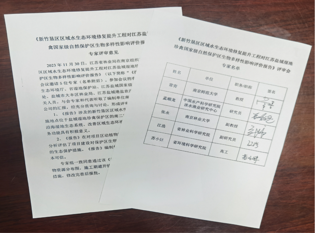 此次評審會由江蘇省林業局組織召開,會議邀請5位生態環境、鳥類保護、水產養殖等領域專家和省自然資源廳、省生態環境廳、省濕地保護站、鹽城珍禽保護區管理處、大豐林業局等單位有關負責同志參加,與會專家和代表對《評價報告》進行逐條認真審查,經充分質詢與探討,最后一致同意《評價報告》通過評審。