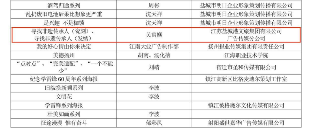 近年來,廣告傳媒分公司發揮巾幗榜樣的示范作用,她們奮斗在各個部門、各個崗位,用奮斗匯聚“她力量”、用實干撐起“半邊天”,傳遞著鹽城港女性正能量。本屆大賽獲獎的兩項作品《桃李滿園、品味書香》職業組公益類作品銅獎、《尋找非遺傳承人》職業組公益類作品優秀獎正是廣告傳媒分公司展現“她力量”的真實寫照。