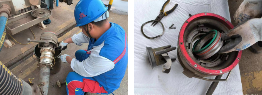 經港儲石化維保先鋒隊自主研究,以“屢戰屢敗、屢敗屢戰”的精神,不斷嘗試各種材質,最終以四氟材料包氟處理的密封圈替代原有材質的密封圈,成功完成創新改造,有效提升生產裝卸作業本質安全。經核算,改造一套密封圈的價格為30元,比原先采購一套6000元的原廠密封圈大幅降低成本,且使用效果極佳,徹底解決干式閥泄漏問題。