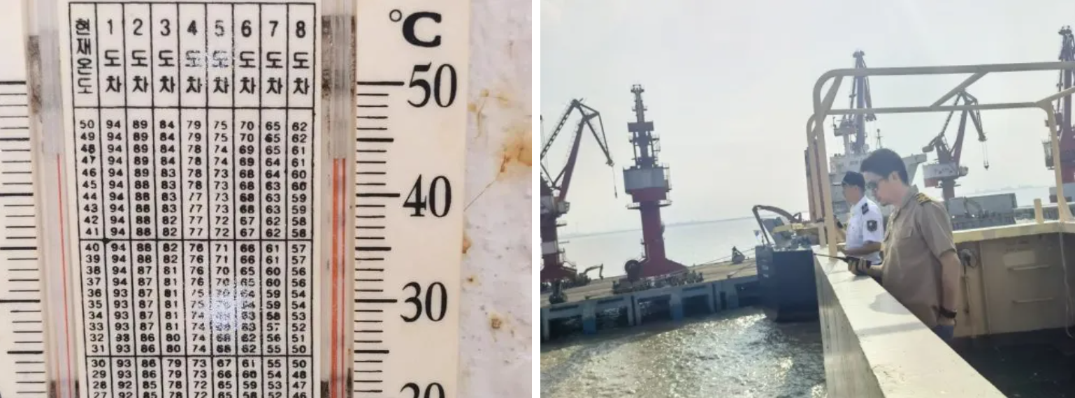 “蒸烤”在一線,持續的高溫陰雨天氣,讓引航工作一直處于蒸汽籠內的濕漉環境,每一次的引航都是一次全身“濕身秀”。尤其近日引領的滿載鐵礦的“雪松”輪,甲板上的溫度達到了40℃之上,加上雨水蒸發的一陣又一陣熱氣,模糊著視線的同時也在“蒸烤”著引航員的身心。即便如此,引航員們依舊一艘又一艘的引領著船舶安全進出港航行。