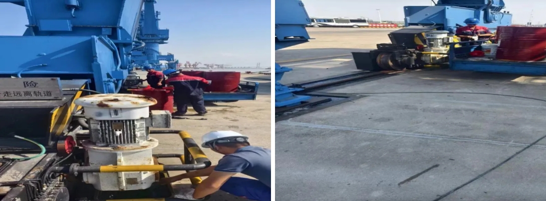 坐標定位:響水港區龍門吊軌道減速箱維護現場