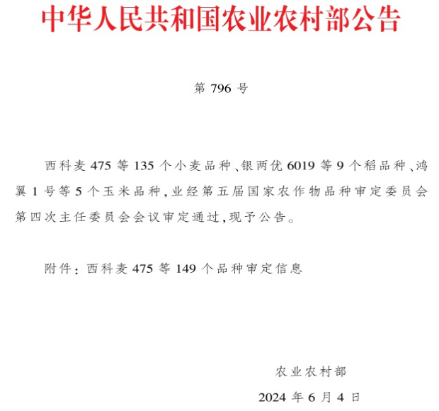 喜報!農業科技集團再添一個國審小麥新品種
