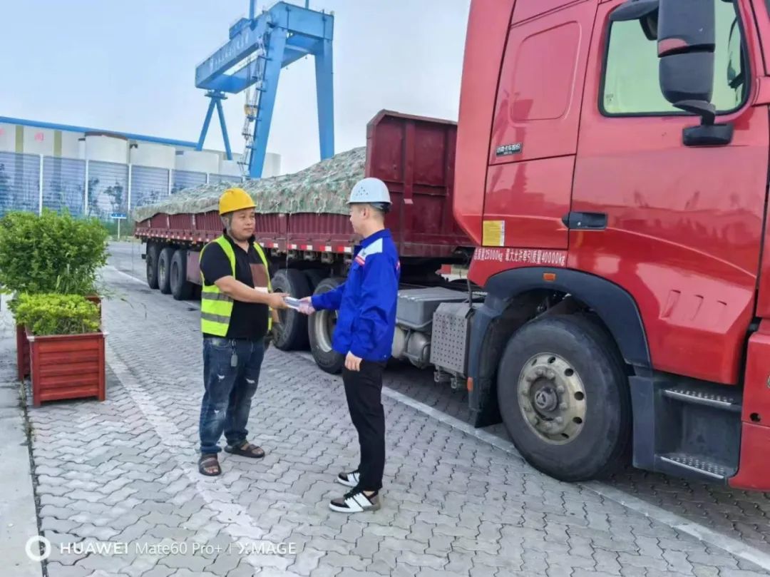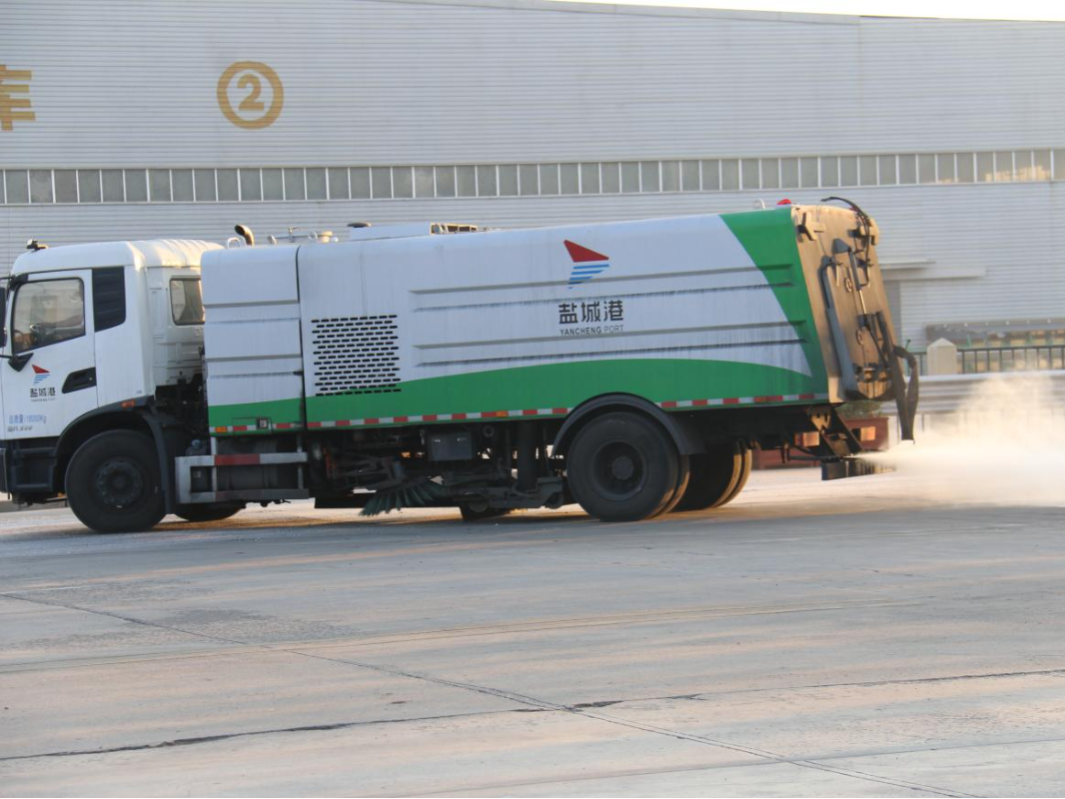 為進一步做好現場安全管理工作,對運輸車輛作業前進行安全檢查,要求司機嚴格按照港區限速要求行駛,尤其是磅房、轉彎處,必須提前減速,避免急剎。與此同時,為防止土石遺撒,最大程度減少對碼頭、道路及行駛環境的安全影響,采取“動態巡查+人工清掃+機械配合”的作業模式,對每臺運輸車輛進行嚴密苫蓋,在車輛運輸路線上布置清掃車,通過“人工掃帚+清掃車”清掃等組合方式,確保港區環境干凈整潔。