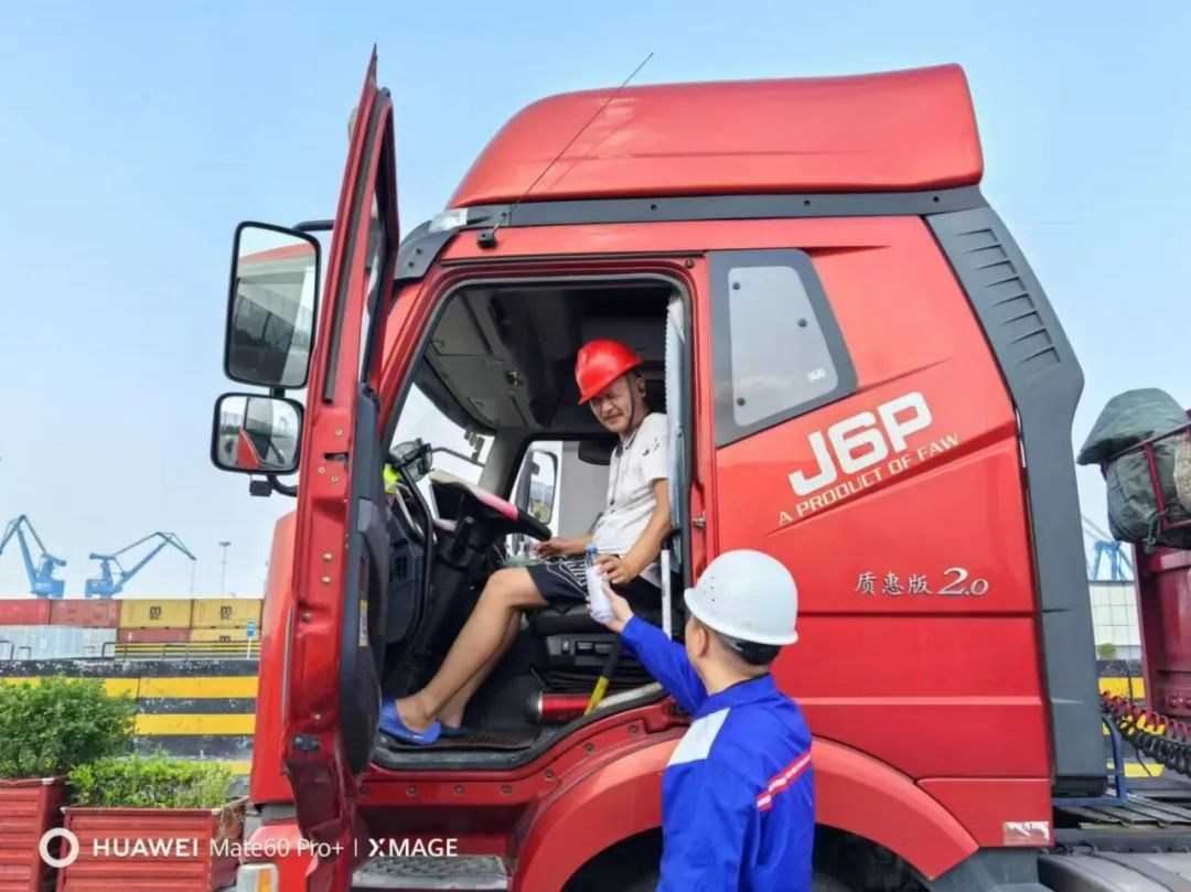 雖已入秋,碼頭高溫不減。一輛輛卡車排列在碼頭,靜靜等待土石裝卸運輸指令,卡車司機也一同經歷著高溫的考驗。為確保卡車司機們的安全與健康,保障運輸不斷檔,港區派專人為司機送去礦泉水等清涼物資,并叮囑他們行車前要仔細檢查車況,注意駕駛安全,預防高溫中暑和各類安全事故發生。貨車司機們紛紛表示,這樣的關懷讓他們感受到了絲絲涼意和滿滿溫情。
