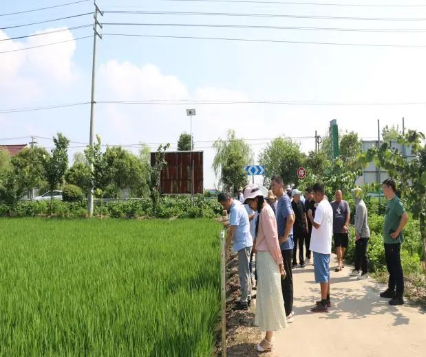 與會人員一行先后參觀了種子供應鏈中心和種植示范基地,實地觀摩種子加工、精選、包裝、倉儲等智能化裝備,詳細了解了金色農業種子加工條件和技術水平。在稻麥推廣示范基地內,金色農業自主選育的“南粳802”“金香糯1號”水稻長勢喜人,工作人員詳細介紹了種植水稻品種的特性、優勢以及種植技術要點,參會人員走進田間地頭,了解品種株型、長勢,并對其抗病能力、產量構成要素等進行探討交流。