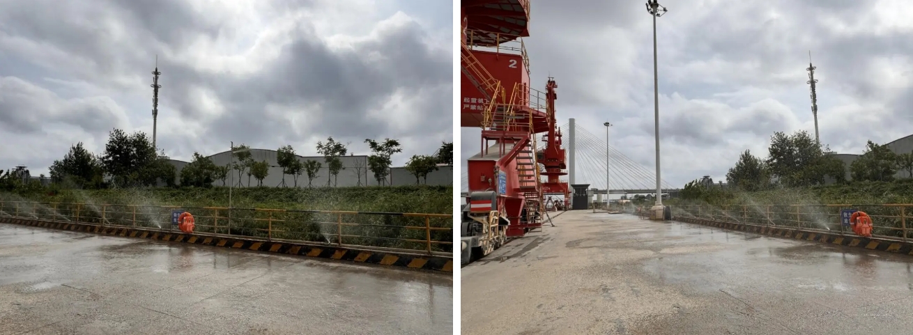 針對碼頭裝卸作業(yè)頻繁、車輛往來運輸極易導致?lián)P塵的問題,響水港區(qū)灌江港務分公司在碼頭前沿進行小改造,在以往前沿基礎設施上增設管道噴淋設施,可根據(jù)作業(yè)強度、揚塵濃度、風速等實時調(diào)節(jié)噴淋量,確保及時有效控制揚塵,同時還兼顧了車輛通行與人員行走的安全性,為碼頭作業(yè)創(chuàng)造更加干凈、整潔、安全的環(huán)境。