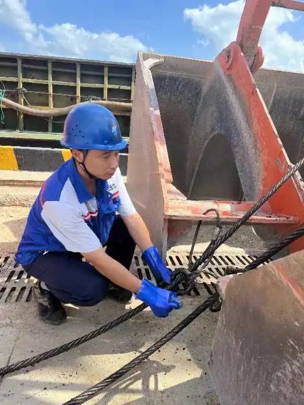 為保障港口的生產(chǎn)經(jīng)營及設備的正常運行,他絲毫不懈怠,及時更換鋼絲繩,保障假期安全。