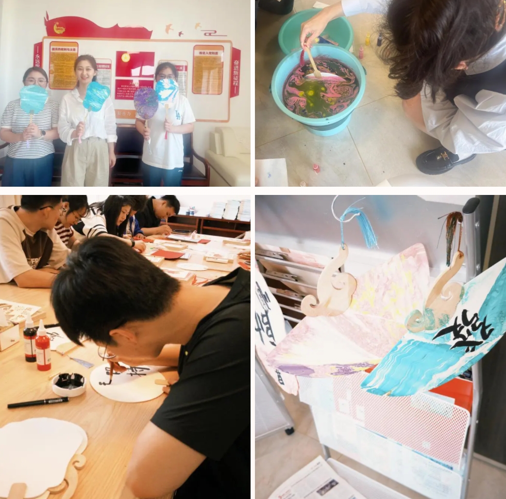 為青年們講述了漆扇的悠久歷史與在華夏藝術(shù)殿堂中璀璨奪目的地位,示范了漆扇制作那繁復而精妙的步驟,從選材到上漆,每一步都透露著對美的極致追求。活動中,青年們充分發(fā)揮創(chuàng)意與想象,將精心調(diào)配的顏料緩緩滴入清澈的水中,隨后以輕盈的手法攪動水面,顏料在水中緩緩擴散,形成一幅幅流動的畫卷,或清新淡雅,或濃墨重彩,那流云般變幻莫測的紋理,是自然與藝術(shù)的完美邂逅,更是青年們傳達著對祖國的愛意。
