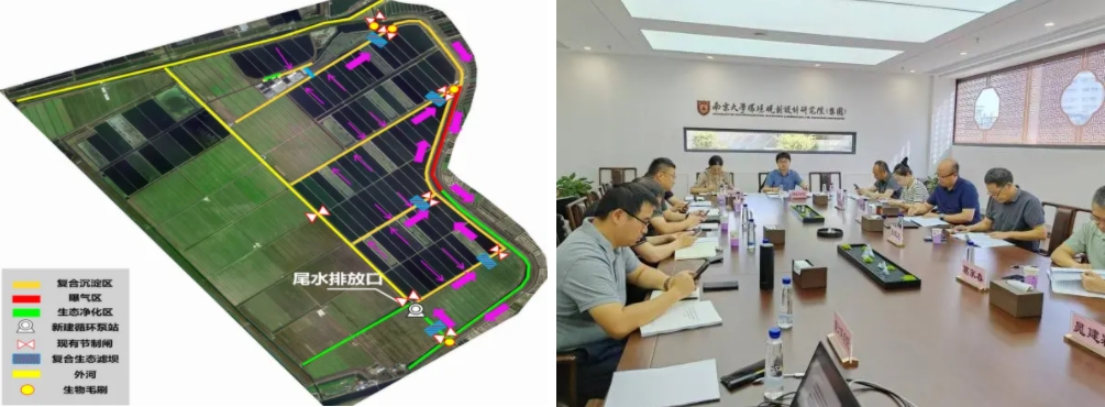 為明確區域尾水治理方案,農業科技集團通過公開招標,委托南京大學環境規劃設計研究院集團股份公司編制《東方綠洲養殖區域養殖尾水治理工程實施方案》《生物多樣性評價報告》以及《有限人為活動論證報告》。為了更快、更好編制方案,農業科技集團明確專人和編制單位深入養殖區,詳細了解區域溝塘分布、養殖品種、數量、密度、尾水排放集中期、水量及周邊企業污水排放等情況,對項目區內6處點位水質進行取樣檢測。通過現場情況分析,計劃建設尾水凈化區約1746.93畝(占養殖凈面積約11.65%,占整個養殖區域9.95%),尾水總停留時間11.75天,日處理能力約20萬方,確保養殖尾水排放達到《池塘養殖尾水排放標準》(DB32/4043-2021)淡水受納水域一級標準。
