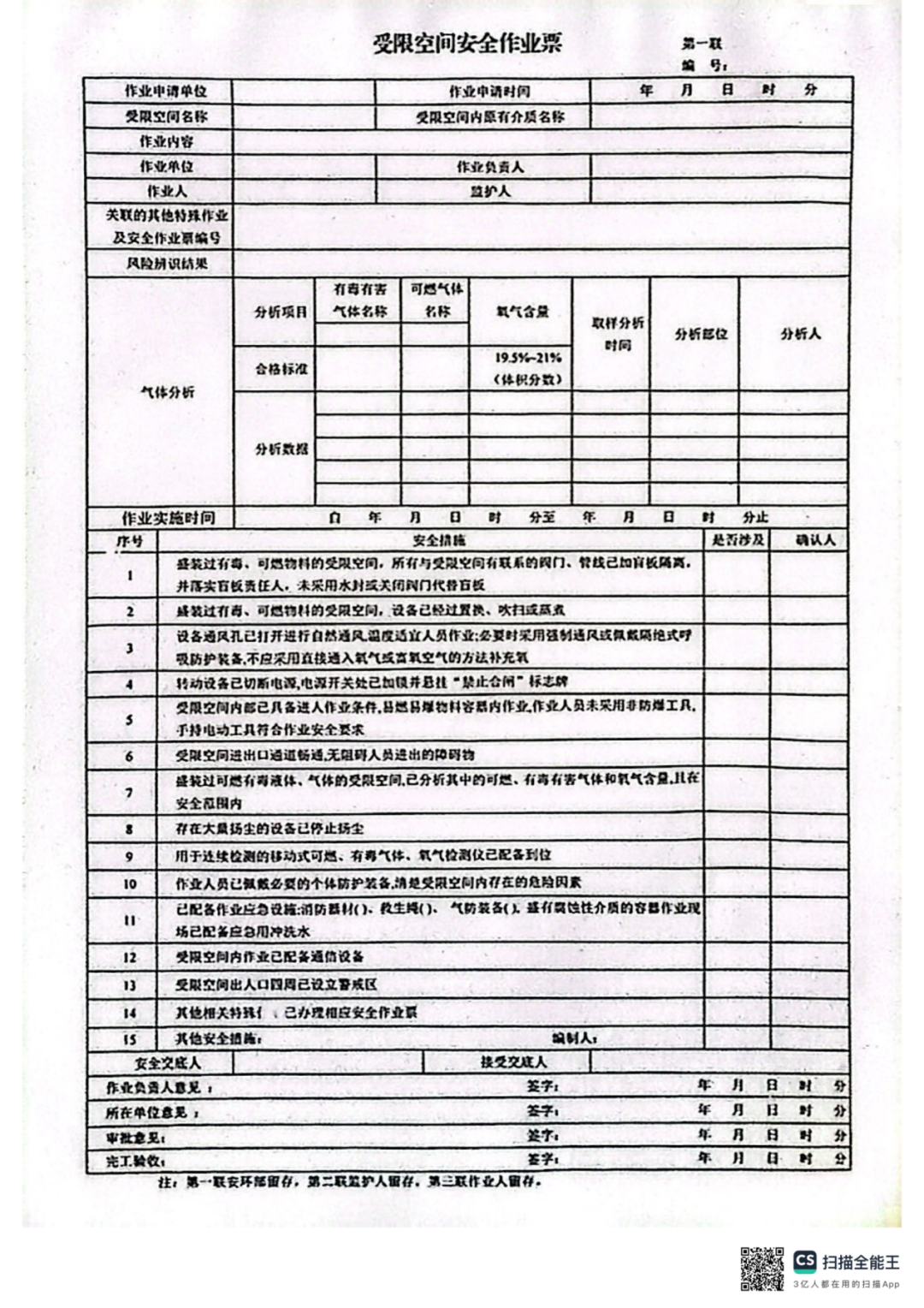 ????規范作業,切勿冒險。有限作業必須進行嚴格審批,作業前必須進行危險有害因素辨識,并將危險有害因素、防控措施和應急措施告知作業人員。