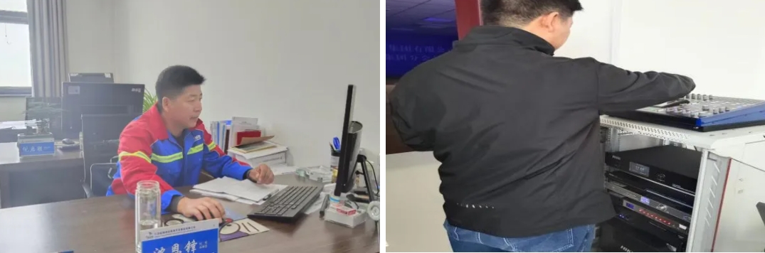 每當(dāng)會議之時,他便主動地來到音響和視頻設(shè)備旁。憑借著特有的專業(yè)技能,認(rèn)真檢查音響設(shè)備的聲況,調(diào)節(jié)音質(zhì),對焦畫面,掌控好音響、視頻幕后的視覺與聽覺。確保現(xiàn)場音響設(shè)備能夠正常高效地運作,為及時傳達(dá)集團(tuán)黨委的各項決策部署奠定了扎實的基礎(chǔ)。