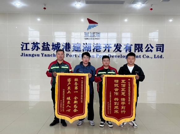 堅守責任之心,勇擔使命之任。近日,鹽城港建湖港區收到江蘇錦達保稅倉儲股份有限公司及上海英斯貝克商品檢驗有限公司贈送的“服務第一 全心為企”與“互信互惠 攜手前行”榮譽錦旗,對鹽城港建湖港區在2024年度在鉻鐵運輸業務中提供的優質服務表示高度認可和支持。