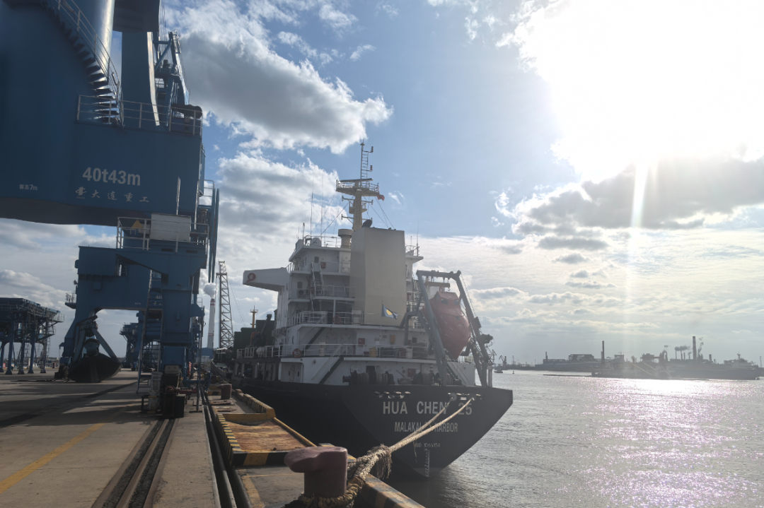 近日,在連云港海事局、鹽城港引航站等相關單位的大力支持下,裝載10047噸外貿鎳鐵的帕勞籍船舶“華辰25”輪和裝載8274噸外貿鎳鐵的巴拿馬籍船舶“德潤”輪順利停靠響水港區4#、5#泊位,這是響水港區首次實現兩艘外貿船舶同時靠泊,標志響水港區口岸綜合服務能力進一步提升。