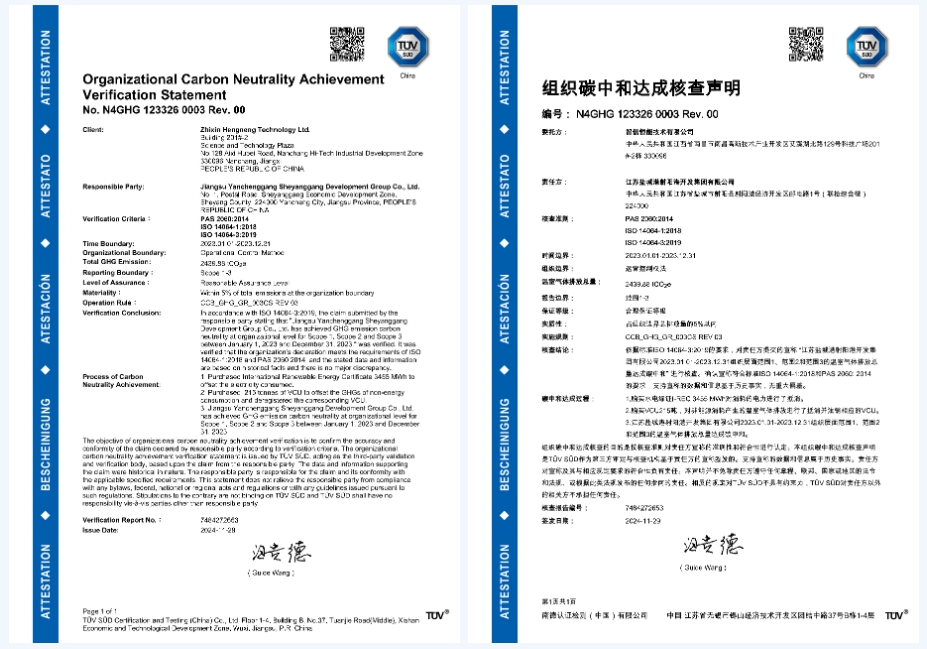 射陽港區積極落實綠色低碳發展戰略,按照鹽城港集團“五新示范港”發展要求,推動“低零碳”港口建設邁出堅實步伐。11月29日,鹽城港射陽港區獲得TUV南德意志集團頒發的《組織碳中和達成核查聲明》。繼2023年鹽城港射陽港區獲得碳中和承諾審定聲明以來,射陽港區在鹽城港集團黨委的堅強領導下,積極落實國家“雙碳”目標戰略,全面推動港口綠色低碳發展,奮力為鹽城勇當全省發展新質生產力重要陣地“碳路先鋒”做出的又一項重要實踐。