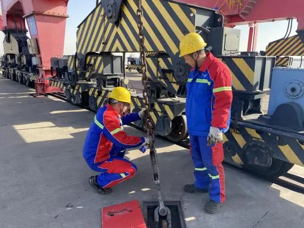 “磨刀不誤砍柴工”,射陽港區(qū)結(jié)合現(xiàn)場實(shí)際情況,制定班組檢查方案,重點(diǎn)做好防寒、防凍、防風(fēng)、防火等季節(jié)性工作的準(zhǔn)備。生產(chǎn)保障組將設(shè)備管理關(guān)口前移,加大冬季設(shè)備整修力度,無死角地開展設(shè)備換季大檢查,對設(shè)備逐件、逐項(xiàng)進(jìn)行防寒整治,對發(fā)現(xiàn)的問題做到及時(shí)整治、協(xié)調(diào)處理、實(shí)名銷號(hào),同時(shí)對設(shè)備密封性能進(jìn)行“地毯式”排查,建立相關(guān)臺(tái)賬。按照大修標(biāo)準(zhǔn)和周期管控要求,對門機(jī)設(shè)備四大主要機(jī)構(gòu)及電控部分進(jìn)行檢修,切實(shí)提升設(shè)備可靠性,有效保障連續(xù)生產(chǎn)。