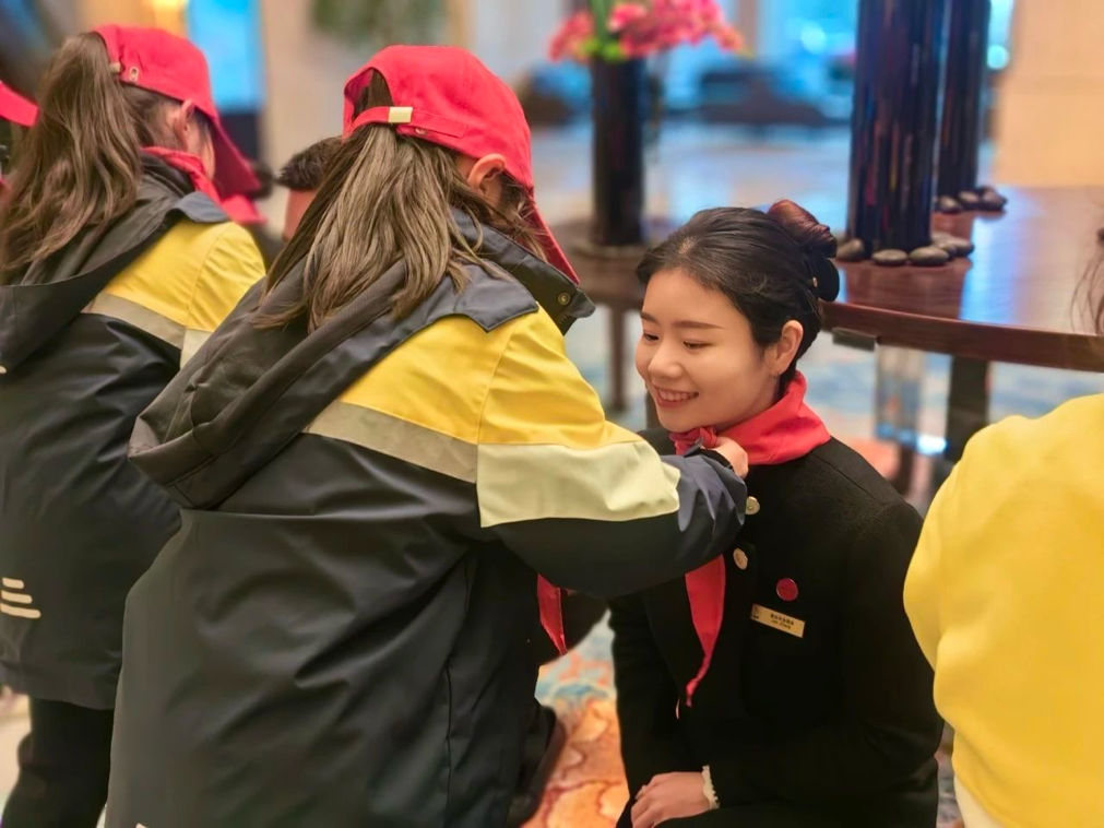 近日,港泊半島酒店與大豐港實驗學校聯(lián)合舉辦了以“三月春‘鋒’暖心扉,助人精神代代傳”為主題的榜樣尋訪活動。活動當天,少先隊員們首先觀看了鹽城港宣傳片,感受著黃海之濱的獨特魅力和日新月異的變化。隨后,他們走進港泊半島酒店餐廳,酒店員工張曉芳展示了疊口布花的技藝,還分享了自己捐獻造血干細胞的感人經(jīng)歷,生動詮釋了雷鋒精神的內(nèi)涵。在采訪環(huán)節(jié),少先隊員們積極提問,與張曉芳進行了深入交流,現(xiàn)場氣氛熱烈。