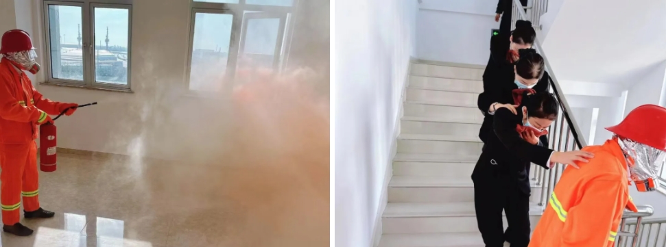 消防知識講座從火災(zāi)的分類、消防器材的使用、保養(yǎng)等方面向大家生動講解了消防安全重要性。實操模擬火災(zāi)現(xiàn)場,保安組臨危不懼,一隊手提滅火器、拔掉保險銷、對準(zhǔn)火焰根部噴射,“大火”很快被撲滅;另一隊指揮大家用濕毛巾捂住口鼻,彎腰低姿態(tài)前行,有序地撤離到安全區(qū)域。通過培訓(xùn)演練,進一步增強了安全意識和臨危不亂的心理素質(zhì),以實際行動筑牢了港區(qū)的“防火墻”。