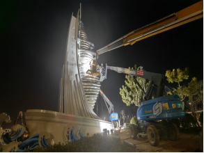 隨著最后一組LED燈光調(diào)試完成,鹽城港響水港區(qū)入口處,一座高17米的藍白色地標建筑正式點亮。這座以“乘風(fēng)破浪”為設(shè)計理念的“精神堡壘”,歷經(jīng)三個月攻堅建設(shè),成為展示港區(qū)形象、服務(wù)城市交通導(dǎo)航的多功能地標。