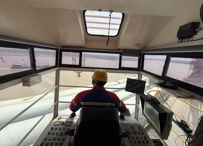 抓斗起落在數(shù)十米的高空中劃出流暢弧線,鋼齒咬合的瞬間,貨物簌簌滑落,門機室的玻璃接住了陽光拋來的金線,織進了門機工的工裝里。他們心無旁騖,雙手穩(wěn)如磐石,憑借毫米級的操作精度,滿載時控制抓斗勻速下沉,避免貨物散落;空載時調(diào)整角度規(guī)避障礙物,確保設備與人員安全,全力提升港區(qū)貨物吞吐量,為港區(qū)完成年度目標任務貢獻力量。