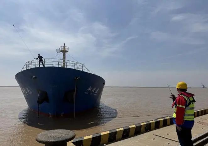 在射陽港區(qū)碼頭前沿,穿戴整齊調(diào)度員正和船長、碼頭操作人員通過對講機保持密切溝通,根據(jù)實際情況發(fā)出靠泊指令,指揮船舶控制航速、調(diào)整船位,確保船舶平行、緩慢地靠近泊位。同時提醒碼頭操作人員準備好纜繩、護舷等設備,完成系纜固定船舶工作。滿分穿搭為調(diào)度員的日常工作保駕護航,精準調(diào)度為下一步的裝卸作業(yè)提供了堅實的保障和高效的指引。