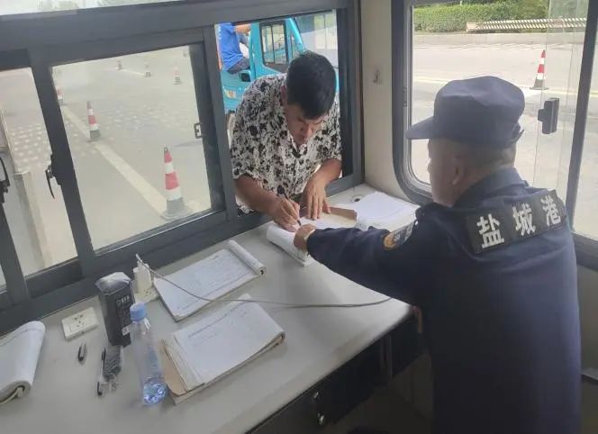 “你好,請將車停一下,登記進港。”門崗保安員身子挺拔,手持醒目的紅色停車示意牌,維持港區(qū)入口處的進出安全。他們目光堅定,迅速核對駕駛員出示的證件與進港通行證,指尖在登記簿上飛速記錄車牌、姓名、事由等信息,同時與職能部門實時核驗身份。他們說,只要穿著保安服,我們就必須用嚴謹細致的工作狀態(tài),守牢港口的第一道安全防線。
