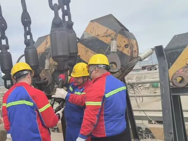 安全,是港口生產永遠不可逾越的紅線,設備安全更是重中之重。生產保障組24小時堅守崗位,時刻守護著港口設備的安全運行。他們依據門機使用頻率、作業環境及磨損數據等詳細信息,“量體裁衣”地為每一臺設備制定保養方案。為關鍵部位充分潤滑,確保“鋼鐵巨人”能夠運轉流暢;鋼絲繩等重點部件接受“點檢員”細致入微的檢查,不放過一絲隱患裂痕,為安全生產筑起堅實的“防護墻”。