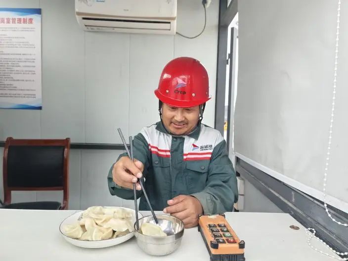 活動中,港區(qū)還特意為堅守在作業(yè)一線的員工留了一份熱騰騰的餃子,由專人送到崗位上,讓他們在忙碌間隙也能嘗到這份集體的心意。