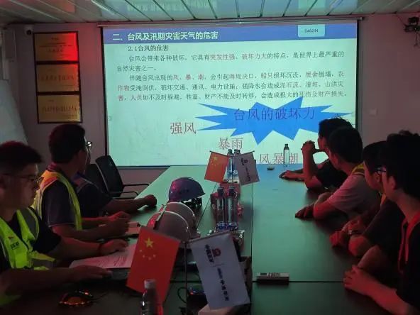 安環(huán)部將沉浸式的“安全課堂”送到項(xiàng)目現(xiàn)場(chǎng)。安全講師結(jié)合近年來發(fā)生的真實(shí)案例,生動(dòng)剖析了臺(tái)風(fēng)、強(qiáng)降雨、雷電等災(zāi)害天氣的特點(diǎn)及危害,重點(diǎn)講解了:項(xiàng)目現(xiàn)場(chǎng)的洪澇災(zāi)害薄弱點(diǎn)識(shí)別、汛期臨時(shí)用電、臨邊防護(hù)等關(guān)鍵風(fēng)險(xiǎn)管控、應(yīng)急報(bào)警、人員疏散、傷員急救等核心流程。