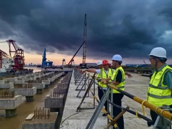 “臺風‘竹節(jié)草’逼近,立即啟動應(yīng)急預(yù)案!”7月30日夜,調(diào)度室的急促電話劃破寂靜。防臺防汛領(lǐng)導(dǎo)小組全員到崗,通過“船岸協(xié)同”機制將施工船舶拖至避風港。安全總監(jiān)手持應(yīng)急燈,沿著濕滑的碼頭仔細巡查,每隔一小時便記錄下浪高的數(shù)據(jù),靴中積水與汗水交織。