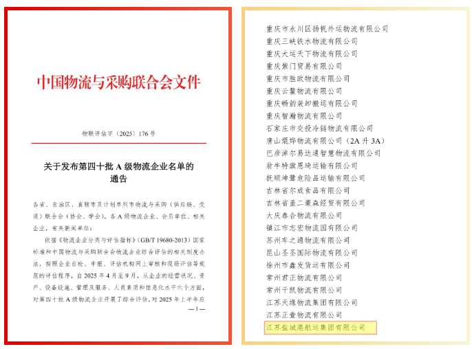 近日,中國物流與采購聯(lián)合會正式發(fā)布了全國第40批A級物流企業(yè)名單,鹽城港航運(yùn)集團(tuán)憑借其在物流行業(yè)的卓越表現(xiàn)獲得“3A級物流企業(yè)”認(rèn)證。這一殊榮不僅是行業(yè)對公司綜合實力、服務(wù)品質(zhì)的高度認(rèn)可,更彰顯了航運(yùn)集團(tuán)在物流資源整合、高效運(yùn)營以及創(chuàng)新驅(qū)動方面的標(biāo)桿引領(lǐng)作用,為公司未來發(fā)展奠定了更加堅實的基礎(chǔ)。