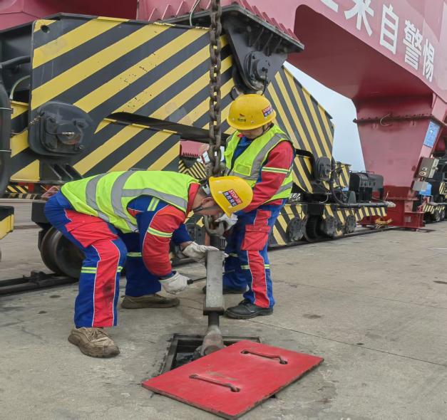 創新舉措“不停步”,激活綠色引擎。趁著大風暫歇的寶貴間隙,港區“五小創新”團隊設備班組迅速集結、分工協作,全力推進“雙泊岸電適配提效”項目。團隊第一時間對接物流信息,高效開展3#散貨泊位岸電分支箱的安裝與調試。目前,1#大件泊位、2#煤炭泊位岸電分支箱已順利投用,岸電使用率達86.25%,為港區綠色低碳轉型增添了新的強勁引擎。