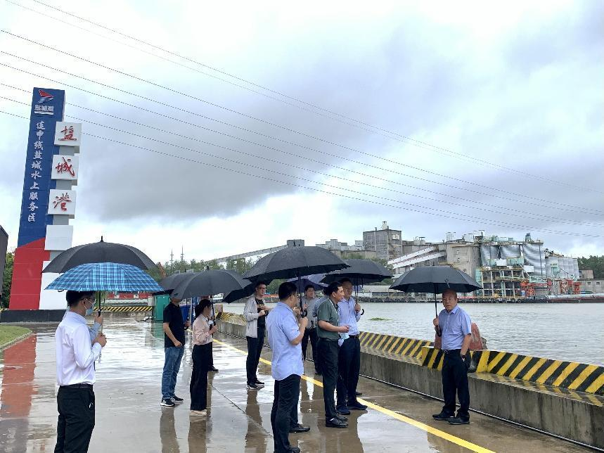 在新洋港水上服務區,陳正華和水上服務區負責人分別匯報了鹽城港水上服務區為內河船民??糠盏?類23項服務功能,以及目前全市首家水上加油加氣站的建設進度情況。