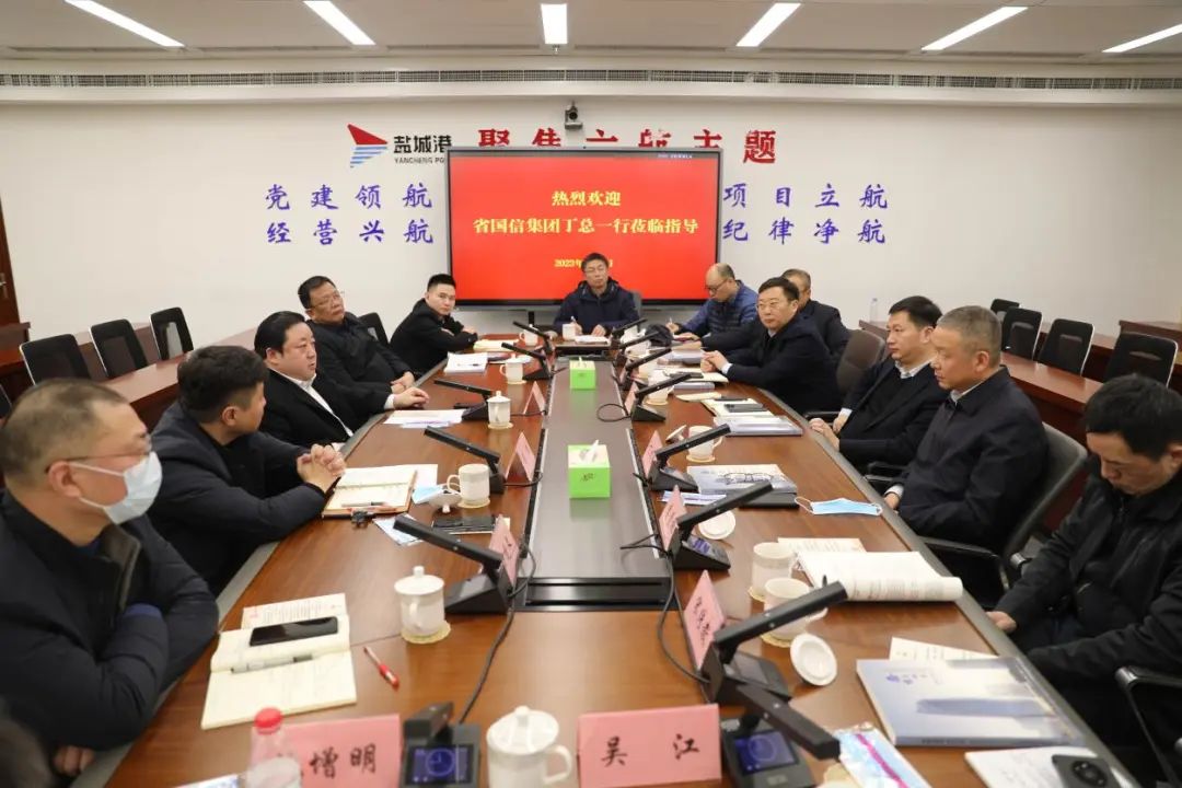 周正雄對丁旭春一行的到訪表示歡迎,并對國信集團在鹽城港集團發展過程中給予的關心和支持表示感謝,并介紹了鹽城港相關情況。他說,2020年,市委、市政府審時度勢,將全市海港和內河港區融為一體,按照規劃、投資、建設、管理、運營一體化要求,實現了海河聯運一體化發展格局,為全市港航事業更優質、更高質量發展奠定堅實基礎。集團成立以來,緊抓發展機遇,于2021年首次躋身全國億噸大港行列,2022年貨物吞吐量增幅及集裝箱量增幅分別位列全國54個沿海港口的第一和第二位,進一步打響了鹽城港的名氣和品牌。與此同時,集團緊抓江蘇沿海發展等契機,聚焦“十四五”末達到2億噸吞吐量和1.5億噸能級的目標,按照不搞“三無一不”投資的要求,持續在港口、航道、堆場、倉儲等領域加大投資,系統性推進實施港口基礎設施建設,為集團實現高質量發展夯實基礎。省國信集團作為江蘇省內大型國有企業,在項目投資和建設方面具有較強的優勢,希望雙方充分發揮各自資源優勢,進一步強化溝通協作,形成工作合力,加快推進各項目前期手續辦理,推動鹽城港射陽港區5萬噸級航道和5萬噸級碼頭等項目落地實施,確保項目盡快開工,早日投產達效。