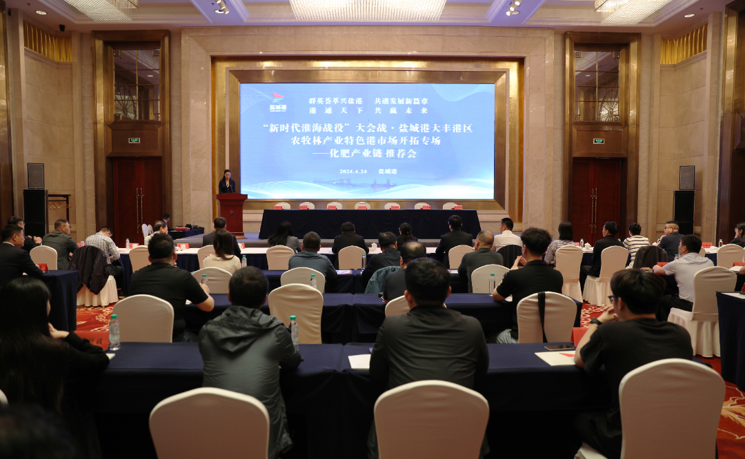 4月24日,集團召開“新時代淮海戰役”大會戰·鹽城港大豐港區農牧林產業特色港市場開拓專場——化肥產業鏈推薦會,邀請長江流域化肥生產加工企業代表56人來港,圍繞協同發展、合作共贏,做大做強化肥產業鏈進行座談交流。集團黨委書記、董事長周正雄出席活動并致辭。集團副總經理袁欣,集團生產運營部、大豐港區相關負責人等參加。