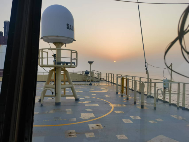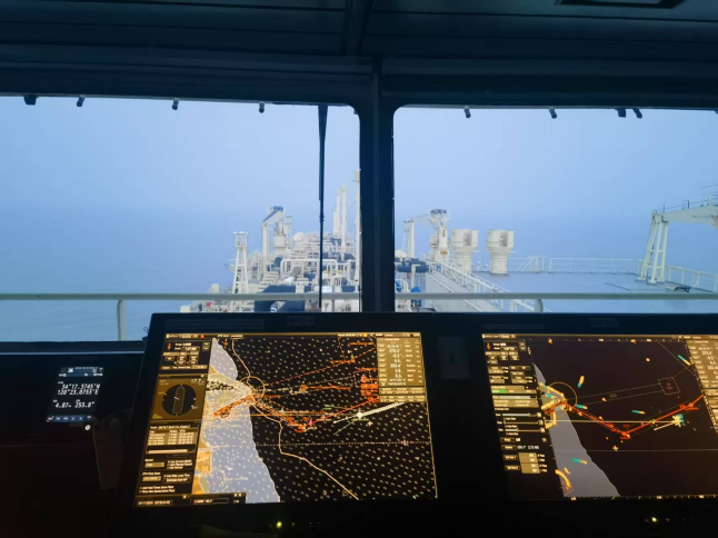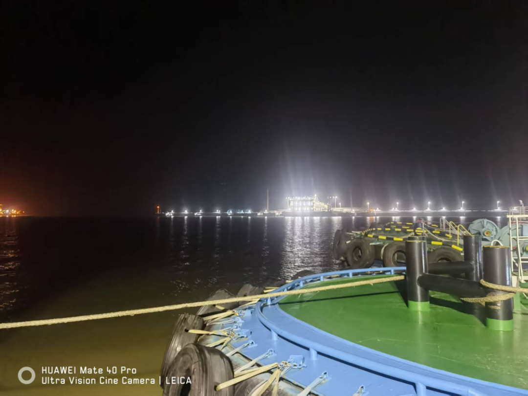 面對“晨昏蒙影”特殊時段(黎明前光線昏暗期),引航員提前1小時登輪,與船長反復(fù)核對潮汐、流速和船舶操縱特性。在朝陽初升的關(guān)鍵窗口期,引航員通過精準(zhǔn)操控,在大馬力拖輪協(xié)同配合下,克服船舶慣性、風(fēng)流壓差等技術(shù)難點(diǎn)完成精準(zhǔn)靠泊。