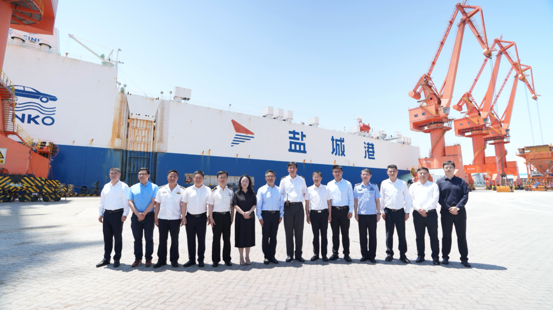 黃海新區(qū)、濱海縣、鹽城港集團主要領(lǐng)導(dǎo)和相關(guān)負責(zé)同志,市“一關(guān)兩檢”相關(guān)負責(zé)人親臨碼頭現(xiàn)場,一同觀看了汽車滾裝全流程作業(yè)。