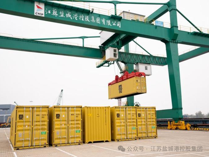 在集裝箱業務領域,與浙江森聯國際物流有限公司達成集裝箱裝卸全流程業務合作意向,首批4船集裝箱已從乍浦船運至阜寧港并開展裝卸作業。后續雙方將簽訂長期合作合同,預計全年可裝卸集裝箱10000TEU,實現營收1300萬元,為港區業務高質量發展注入強勁動力。