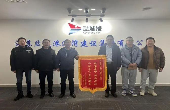 工作船安保碼頭港池疏浚實施期間,正值寒潮來臨,大風大浪頻發,施工船舶頻繁避風,碼頭船舶貨物裝卸作業緊迫。港灣建設集團港航分公司面對此困境,迎難而上,大力發揚“不怕困難、不畏艱險、勇于斗爭、敢于勝利”的精神,成立手續辦理組和項目實施組,聯動協作,積極與碼頭總調及海事部門保持溝通,加強24小時值班值守,時刻關注氣象海況、船舶動態,最終按時保質完成港池疏浚作業,高效的作業效率得到了靠船企業的高度認可,并贈送一面寫著“攻堅克難、追求卓越,盡職盡責、至誠服務”的錦旗。