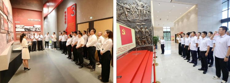 “我志愿加入中國共產黨,擁護黨的綱領,遵守黨的章程,履行黨員義務,執行黨的決定,嚴守黨的紀律……”6月29日,港灣建設集團與天津深基公司鹽城項目黨支部的黨員共同佩戴黨徽、舉起右拳,在鹽都革命陳列館內重溫入黨誓詞,用洪亮的聲音、激昂的語氣,表達了牢記初心使命,踐行為共產主義事業奮斗終身的決心和永葆共產黨員政治本色的信心。