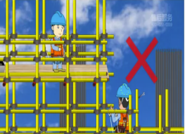(2)搭設(shè)應(yīng)牢固可靠,升高后要設(shè)防護欄桿,掛安全網(wǎng)最好有護身,兜底兩層,嚴防探頭板;