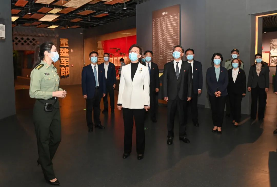走進(jìn)新四軍紀(jì)念館,徐纓帶領(lǐng)大家參觀“鐵軍忠魂”主題展覽,認(rèn)真聽(tīng)取講解介紹,不時(shí)詢問(wèn)有關(guān)情況,通過(guò)一幅幅珍貴圖片、一件件歷史文物、一個(gè)個(gè)戰(zhàn)斗場(chǎng)景,現(xiàn)場(chǎng)接受革命傳統(tǒng)教育,體悟中國(guó)共產(chǎn)黨創(chuàng)業(yè)之坎坷、奮斗之艱辛。在“宋公碑”前,徐纓駐足凝視,聽(tīng)取蘇北沿海民心長(zhǎng)城“宋公堤”的修建經(jīng)過(guò)介紹,感悟老百姓“每聞潮聲思宋公”的深情,重溫中國(guó)共產(chǎn)黨全心全意為人民服務(wù)辦實(shí)事的光輝歷史。