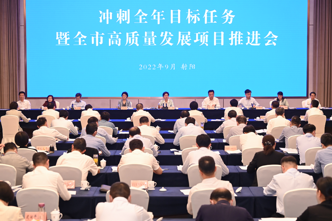 9月28日,我市在射陽召開沖刺全年目標任務暨全市高質量發展項目推進會。市委書記徐纓主持會議并講話,強調要深入學習貫徹習近平總書記在省部級主要領導干部專題研討班上的重要講話精神,全面落實黨中央“疫情要防住、經濟要穩住、發展要安全”重大要求,認真貫徹省委設區市市委書記座談會精神,按照市委八屆三次全會要求,主動擔當、敢為善為,大干當前、沖刺全年,上下同心全力實現最好結果,努力為全省“勇挑大梁”多作鹽城貢獻,著力營造平穩健康的經濟環境、國泰民安的社會環境、風清氣正的政治環境,以實際行動迎接黨的二十大勝利召開。市委副書記、市長周斌,市人大常委會主任王榮,市政協主席陳紅紅,市委副書記、統戰部部長羊維達參加。