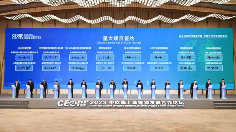 論壇發(fā)布了《2023中歐海上新能源發(fā)展合作論壇鹽城宣言》《公開征集海上光伏、海上能源島與新能源高比例應(yīng)用試點示范技術(shù)方案》《中歐漂浮式海上風(fēng)電關(guān)鍵技術(shù)與產(chǎn)業(yè)鏈對比分析與合作潛力研究報告》等,簽約了25個重大項目,總金額294.8億元,為進(jìn)一步推動海上新能源技術(shù)創(chuàng)新與產(chǎn)業(yè)升級、深化中歐務(wù)實合作注入新動能。
