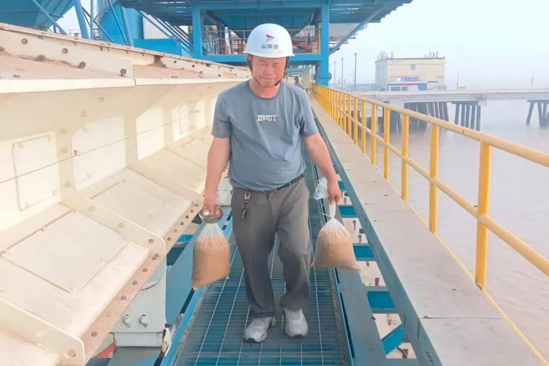 70后的顧西錦,日常主要全力配合貨代外勤推進(jìn)工作,承擔(dān)關(guān)鍵輔助職責(zé)。他像一塊穩(wěn)穩(wěn)矗立的老基石,話不多卻句句扎實(shí),用極致的細(xì)致與可靠,成為外勤團(tuán)隊(duì)不可或缺的“堅(jiān)強(qiáng)后盾”,將“務(wù)實(shí)精進(jìn)”的精神融入每一次業(yè)務(wù)辦理中。盛夏時(shí)節(jié),貨場(chǎng)地表溫度突破40℃,熱浪裹挾著大豆的豆腥味撲面而來(lái),粗糙的豆粒在滿是汗水的掌心滾動(dòng),他的后背早已濕透得能擰出水來(lái)。即便汗水流進(jìn)眼里,帶來(lái)陣陣刺痛,他也只是飛快地抹一把,生怕耽誤后續(xù)檢測(cè)時(shí)效。他常說(shuō):“咱們的工作容不得半點(diǎn)馬虎,就是要把每一件小事做細(xì)、做扎實(shí),精進(jìn)就是把每一次遇到的問(wèn)題,都變成提升自己、改進(jìn)工作的機(jī)會(huì)。”正是這份細(xì)致與堅(jiān)持,讓團(tuán)隊(duì)協(xié)作更加順暢高效,也讓“務(wù)實(shí)”的基因在工作中代代傳遞。