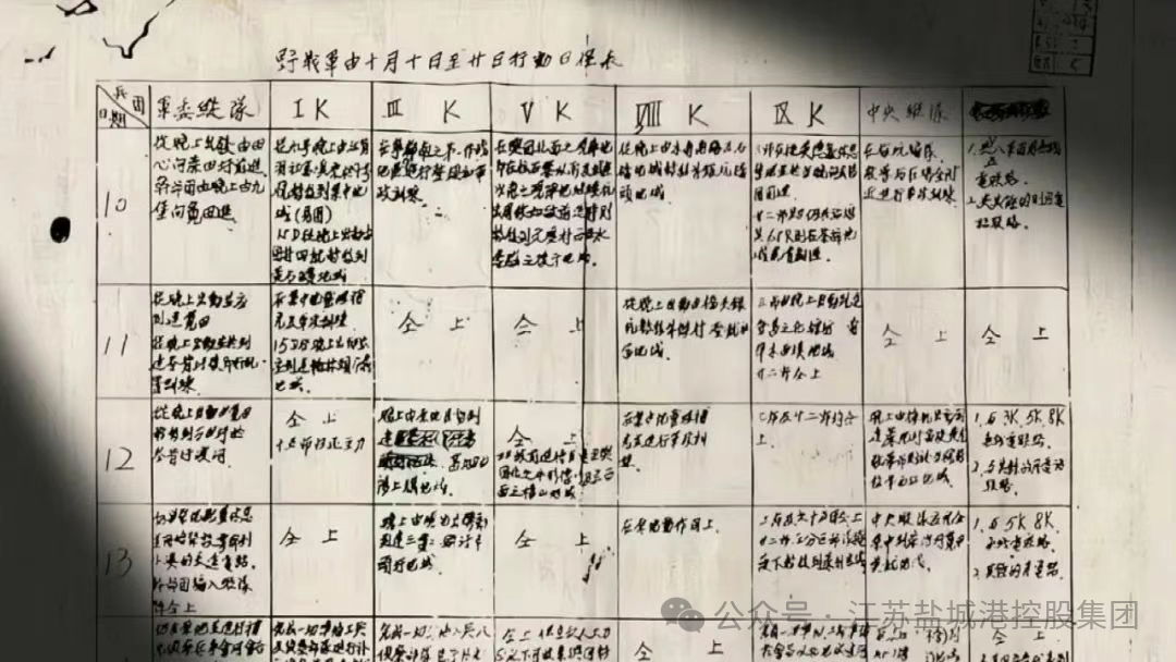 《野戰軍由十月十日至二十日行動日程表》,這是紅軍長征發布的第一份行動計劃。