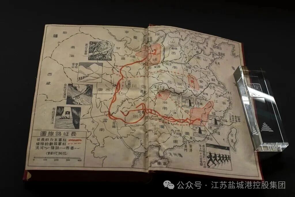 《西行漫記》(Red Star over china)第一個中文全譯本中的紅軍長征路線圖,攝于上海圖書館東館。