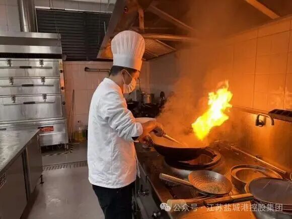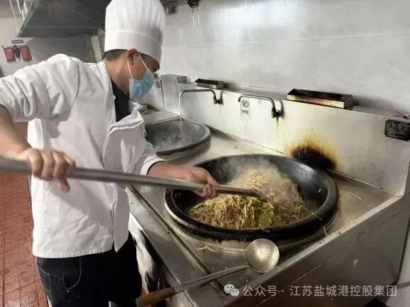 “鍋灶是我的戰(zhàn)場,報表也是我的戰(zhàn)場。讓所有人吃好飯,和做好一道菜,道理是相通的——都要用心。”梅朋朋主要負責湘菜館和大樓食堂事務,他不僅僅是爐灶前顛勺的廚師,更是保障整個湘菜館后廚和大豐港區(qū)港航服務中心食堂高效運轉的“關鍵齒輪”;“百日攻堅就是和時間賽跑,我們的任務就是讓大家吃得好、吃得安心,才能干勁十足。”在午餐高峰時段,他一個人能同時照看三口鍋,翻勺、調味、出鍋,動作行云流水。即便汗流浹背,他也從不降低對菜品的要求。